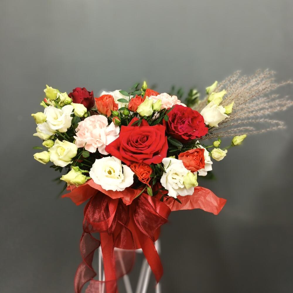 Категорий: Гвоздики, Кустовые розы, Лизиантусы, Розы, Сухоцвет