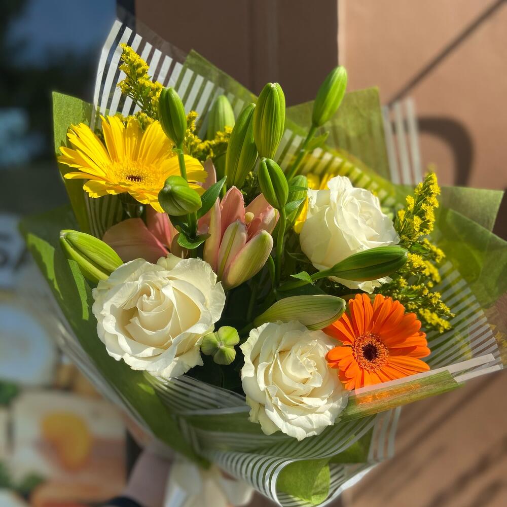 Прекрасный букет из лилий, роз и гербер станет еще краше, когда Лилия раскроет свои бутоны⭐️