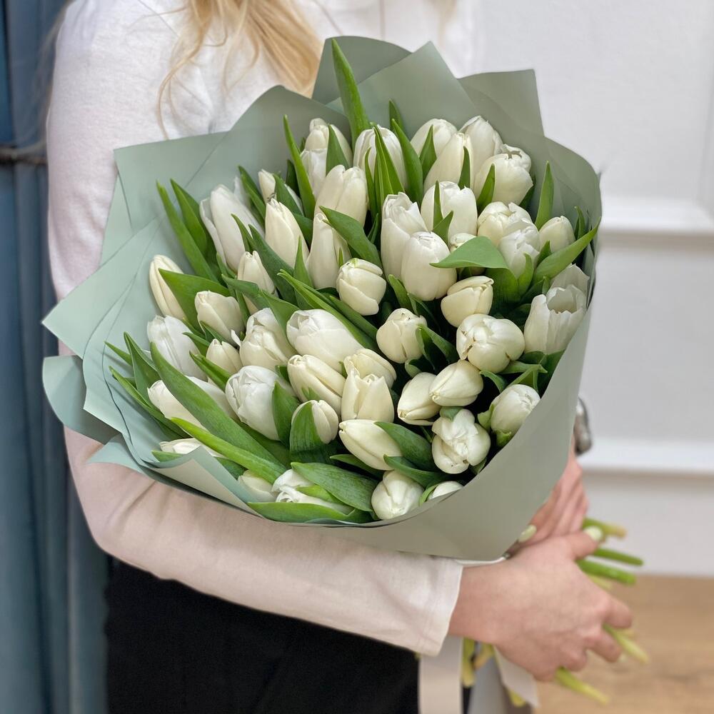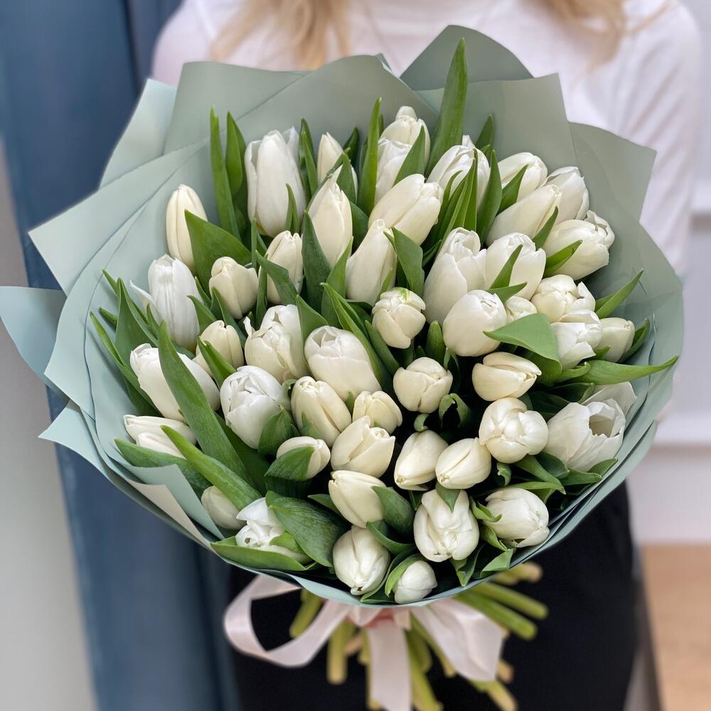 Букет белых тюльпанов 51 шт - «Рай на двоих»