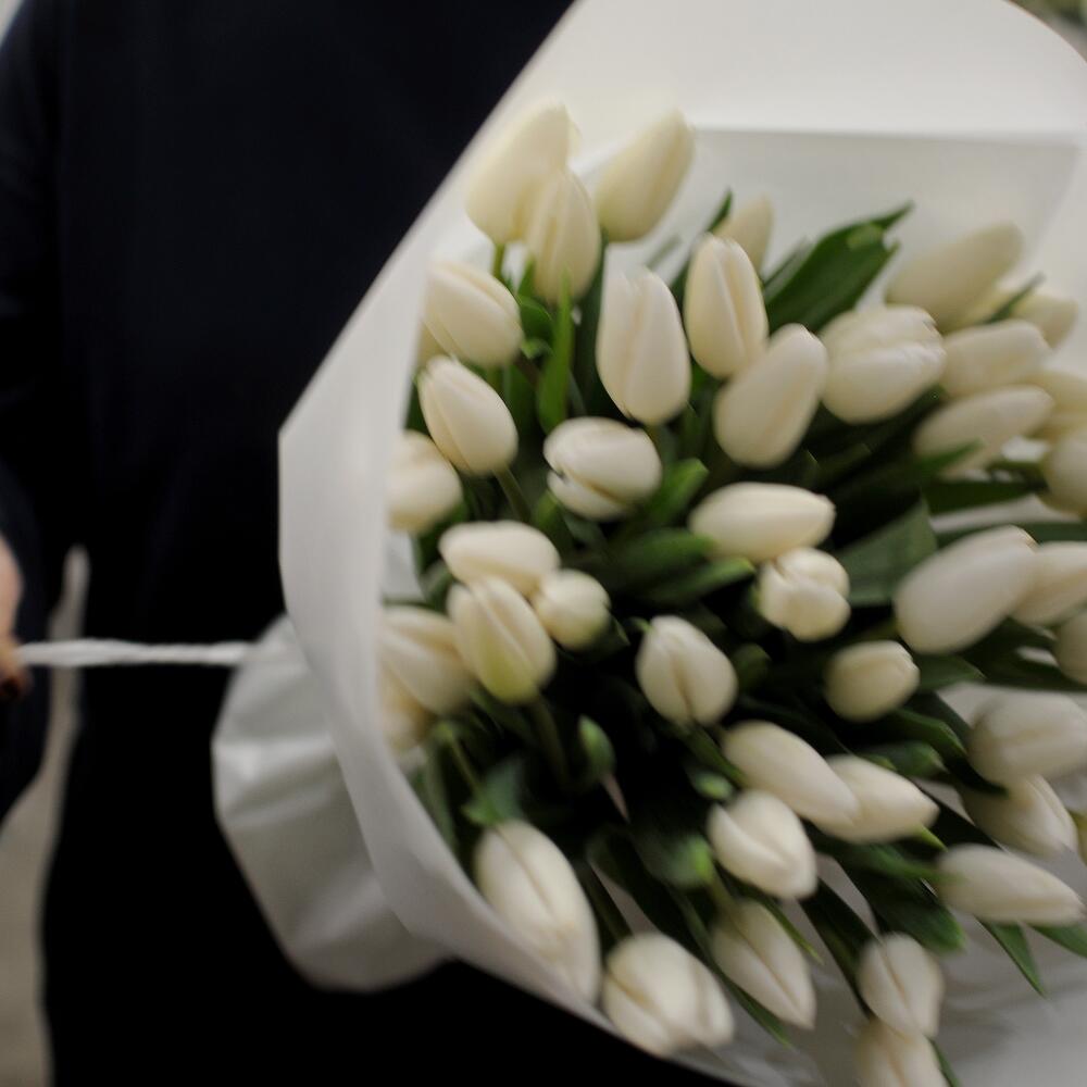 тюльпан простой – 45 шт.Упаковка – 1 шт.Лента – 1 шт.открытка винтаж – 1 шт.